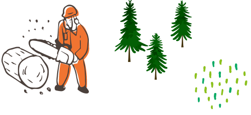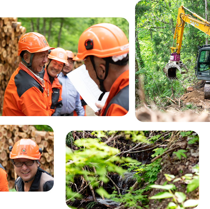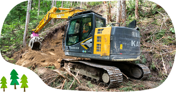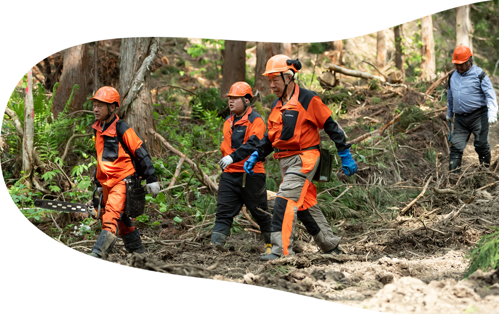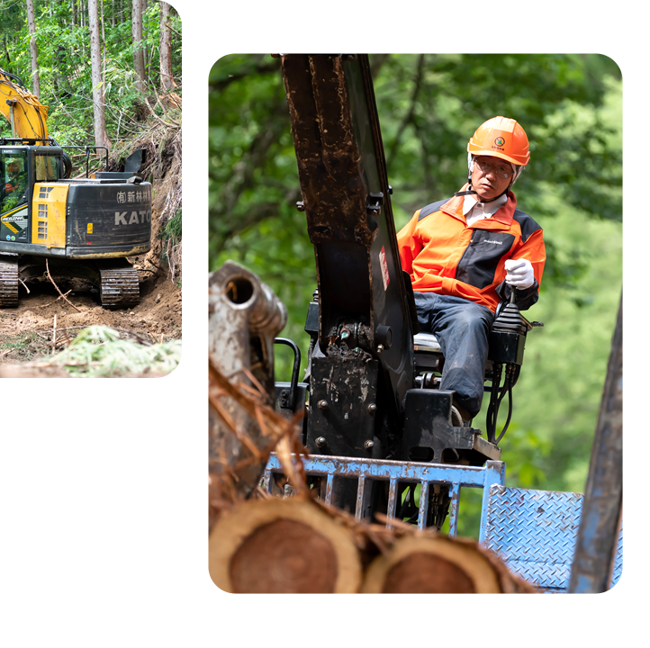 伐採だけでなく、森を育てるための整備作業も行っています。間伐や枝打ち、植林などを通じて、森林の健全な成長を促し、災害に強い森づくりに貢献しています。