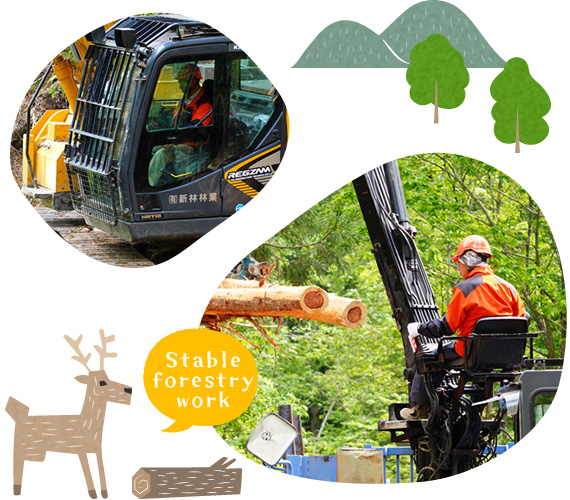 新林林業は、秋田県北秋田市を拠点に、山林の伐採・造材を専門とする林業の会社です。