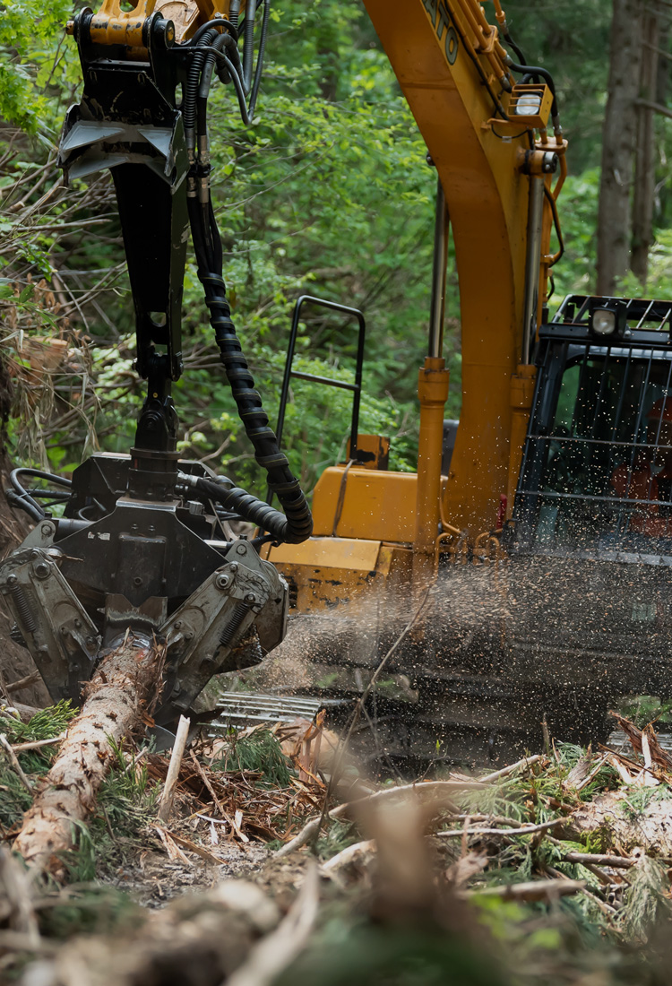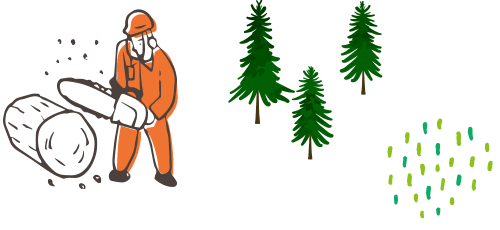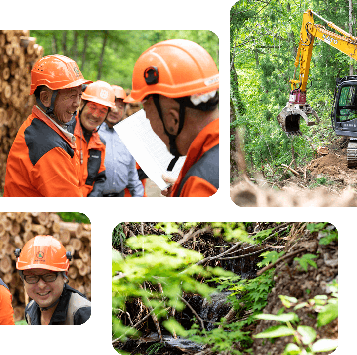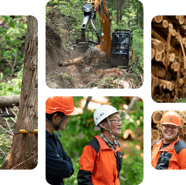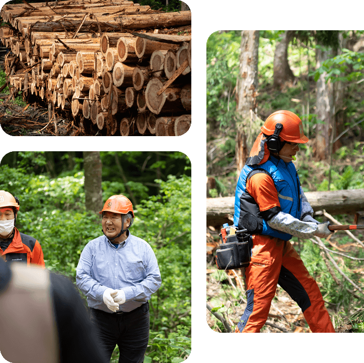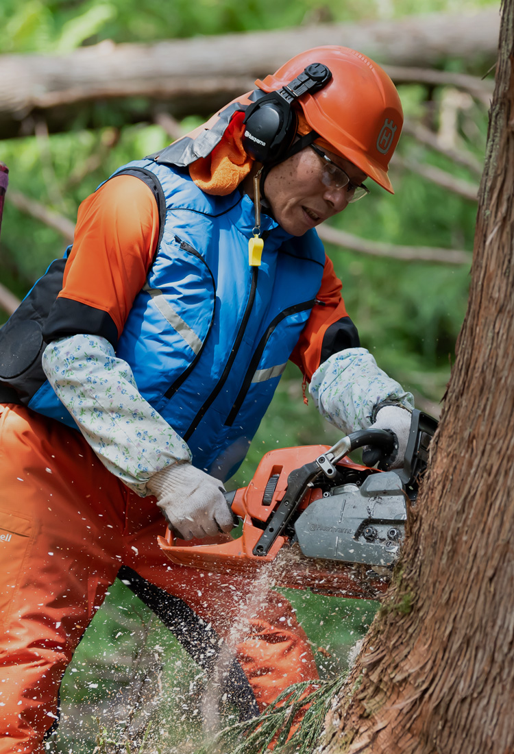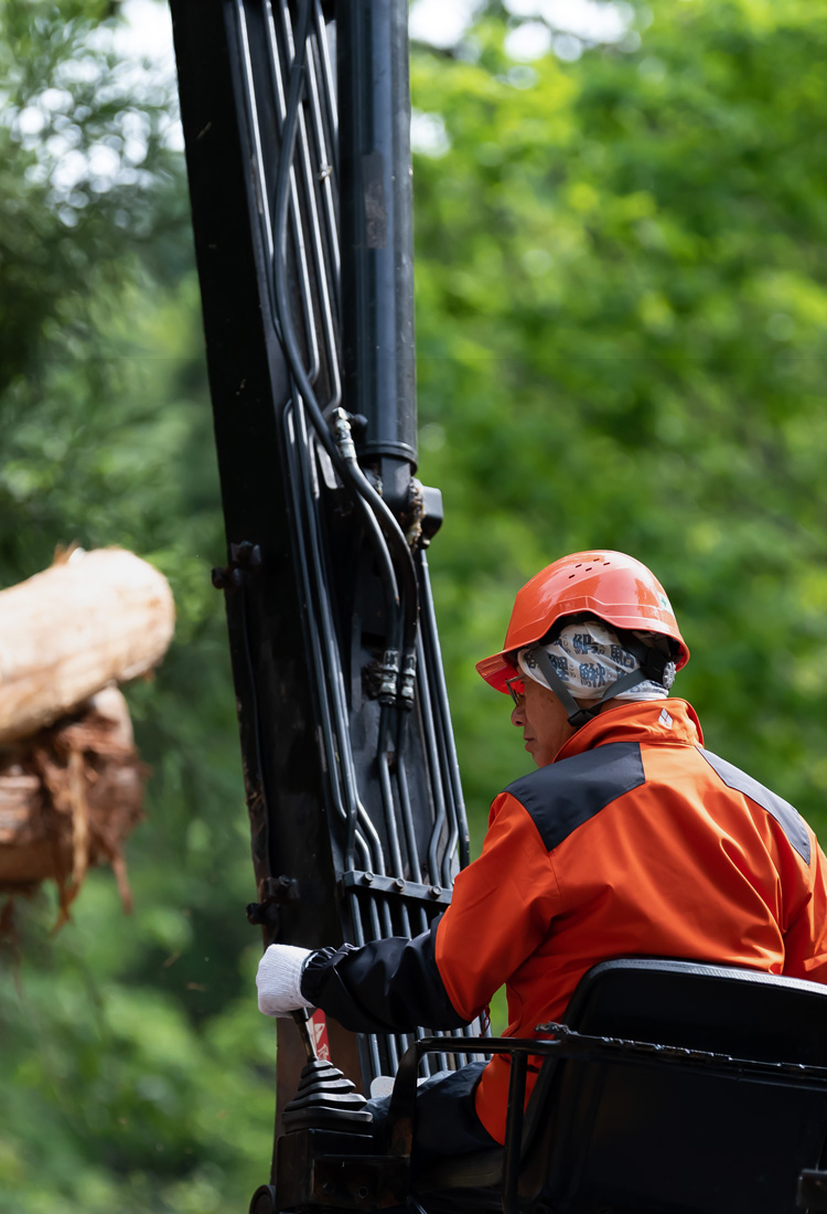 伐採だけでなく、森を育てるための整備作業も行っています。間伐や枝打ち、植林などを通じて、森林の健全な成長を促し、災害に強い森づくりに貢献しています。